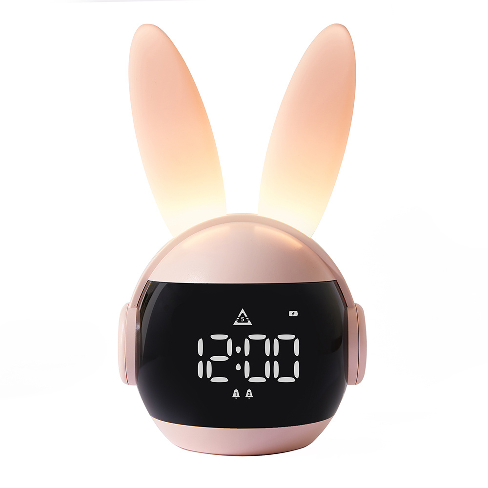 1pc Cute Rabbit-Shaped LED Alarm Clock with Night Light, USB Rechargeable Lithium Battery, Oval Arch Design, Pink & White, Perfect for Bedroom Decor, Bedroom Decor | Playful Design | Soft Glow Light, Rabbit Deco